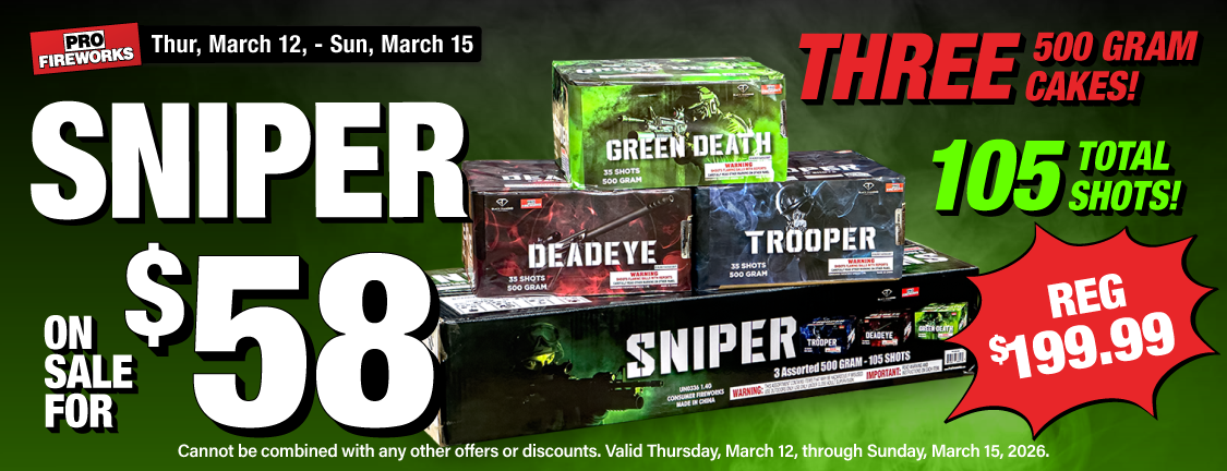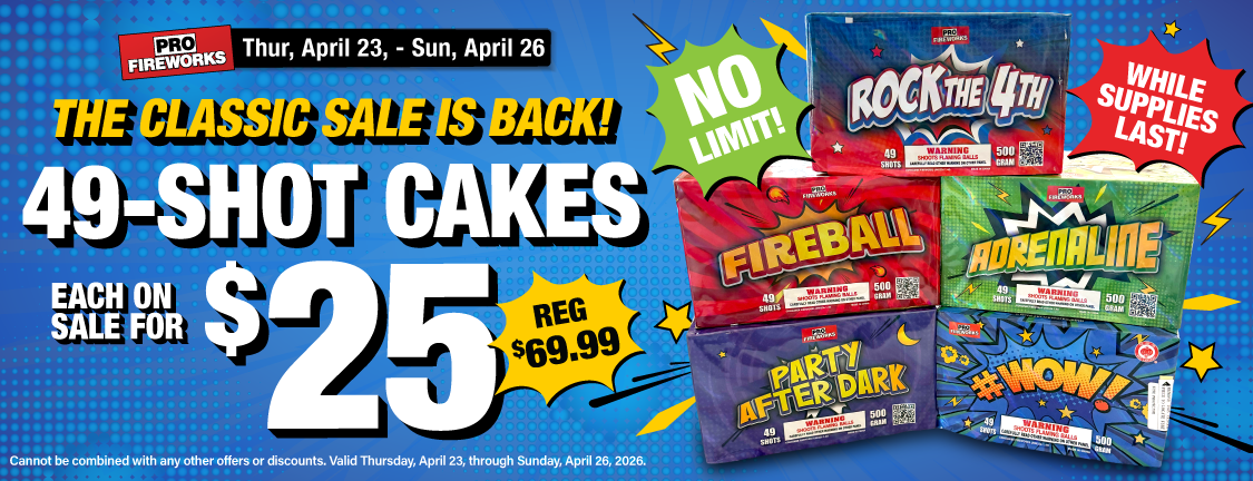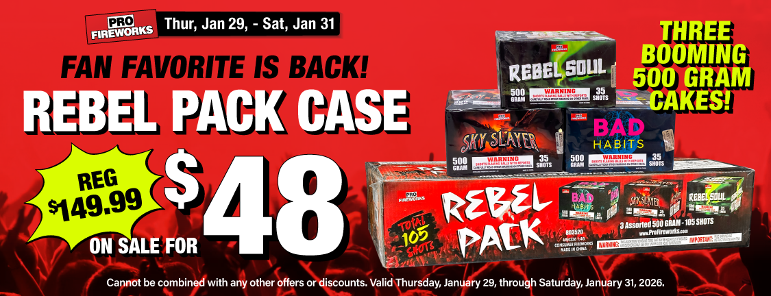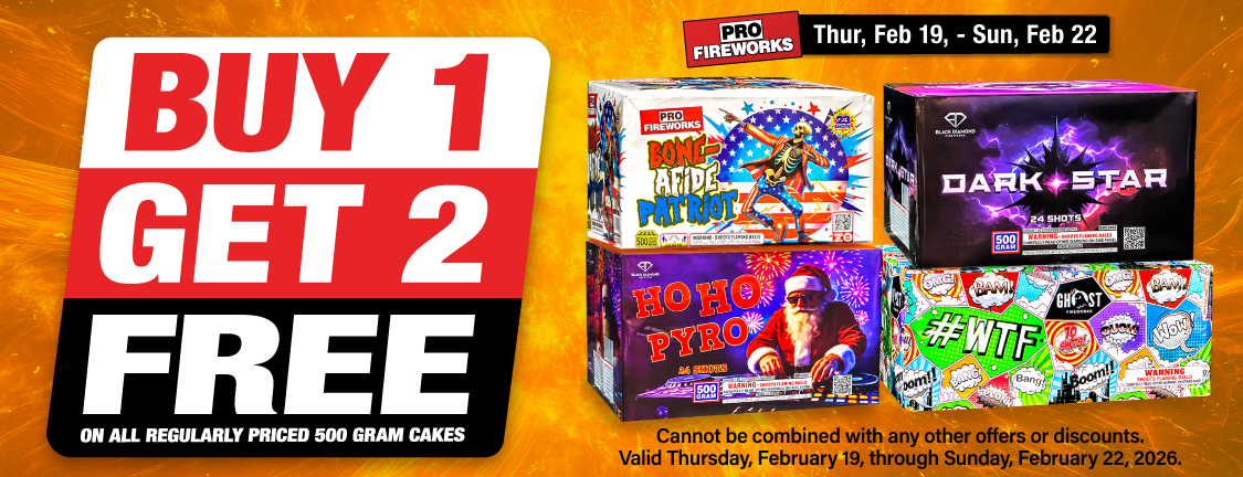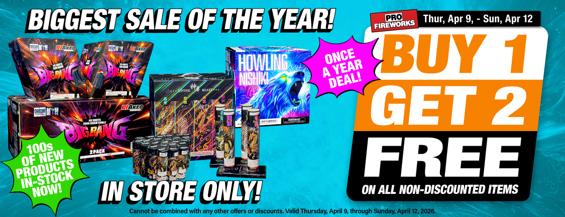 Use what the Pros use! Come in and see our huge selection of fireworks today, our knowledgeable staff will be happy to assist you in all your pyro needs.
