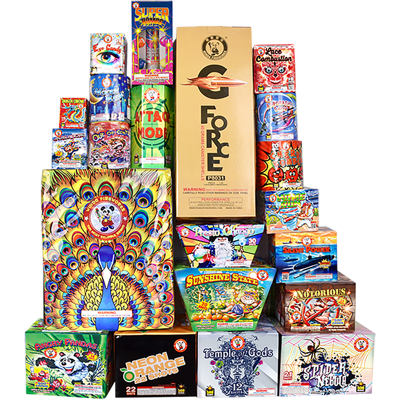 Winda’s biggest assortment! All aerials with canisters, artillery shells, 200g and 500g cakes. Get this party-in-a-box and you’re the boss!